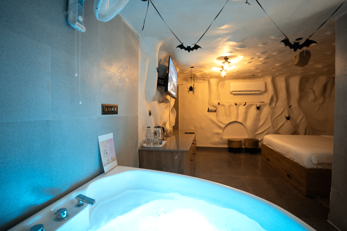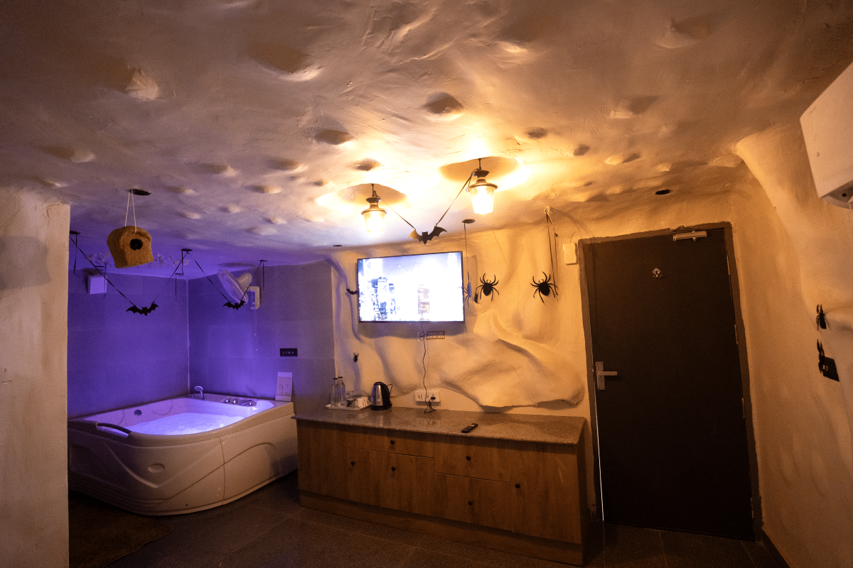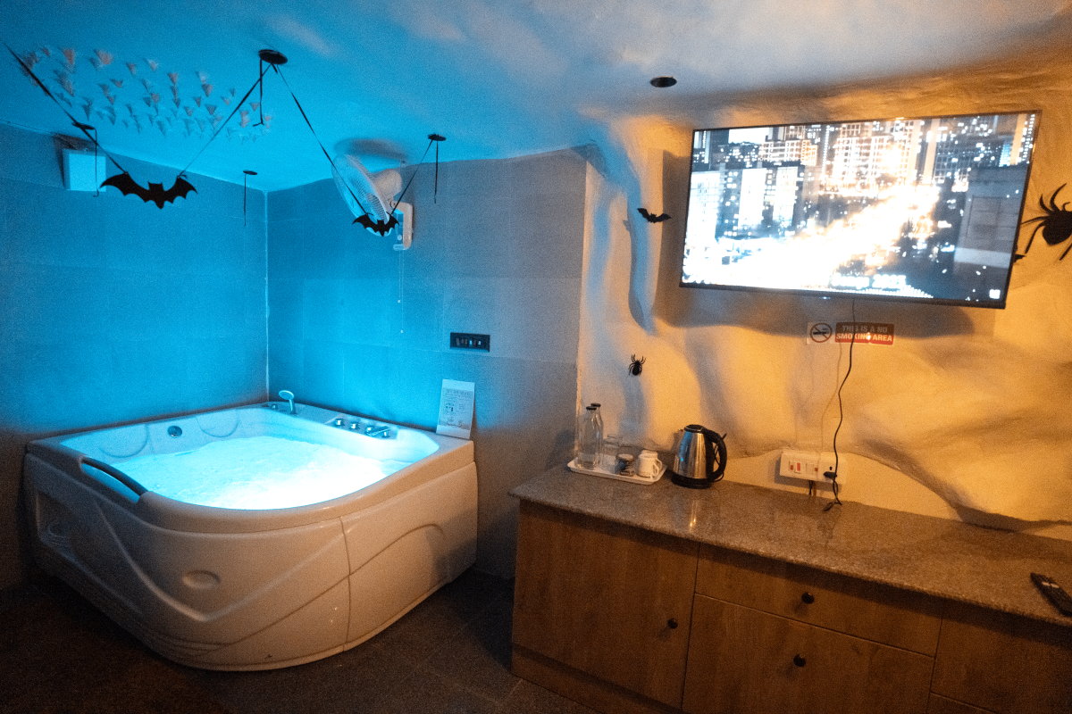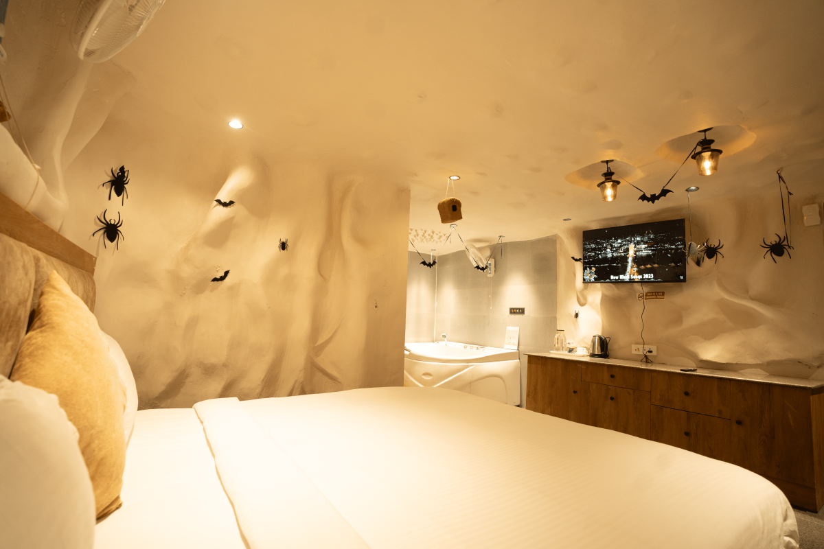 Welcome to Budapest – the city of caves. Evoking a sense of mystery, adventure, and rustic charm, this is a cave-based theme room. As you enter, you’re greeted by rough-hewn stone walls that will transport you to a hidden underground realm. The centerpiece of the room is a cozy bed and of course a private jacuzzi for you to unwind and relax.